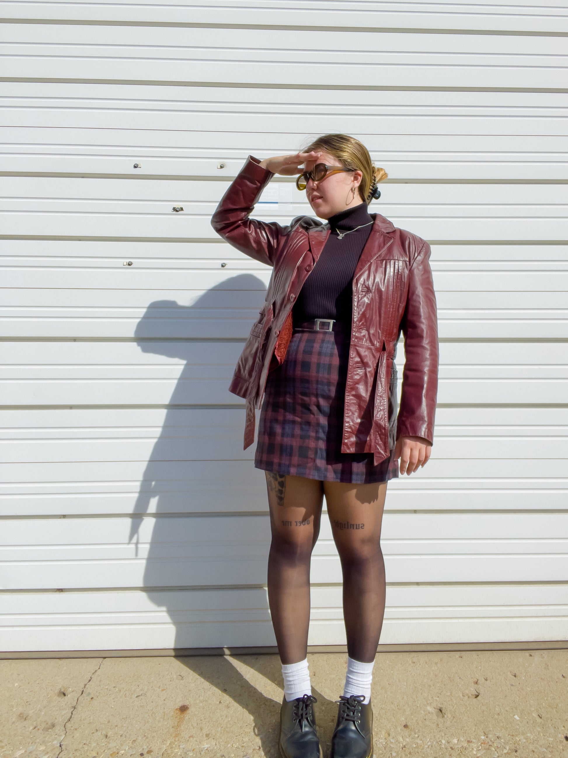 70s Oxblood Genuine Leather Belted Blazer w/ Removable Faux Fur Lining (S/M)