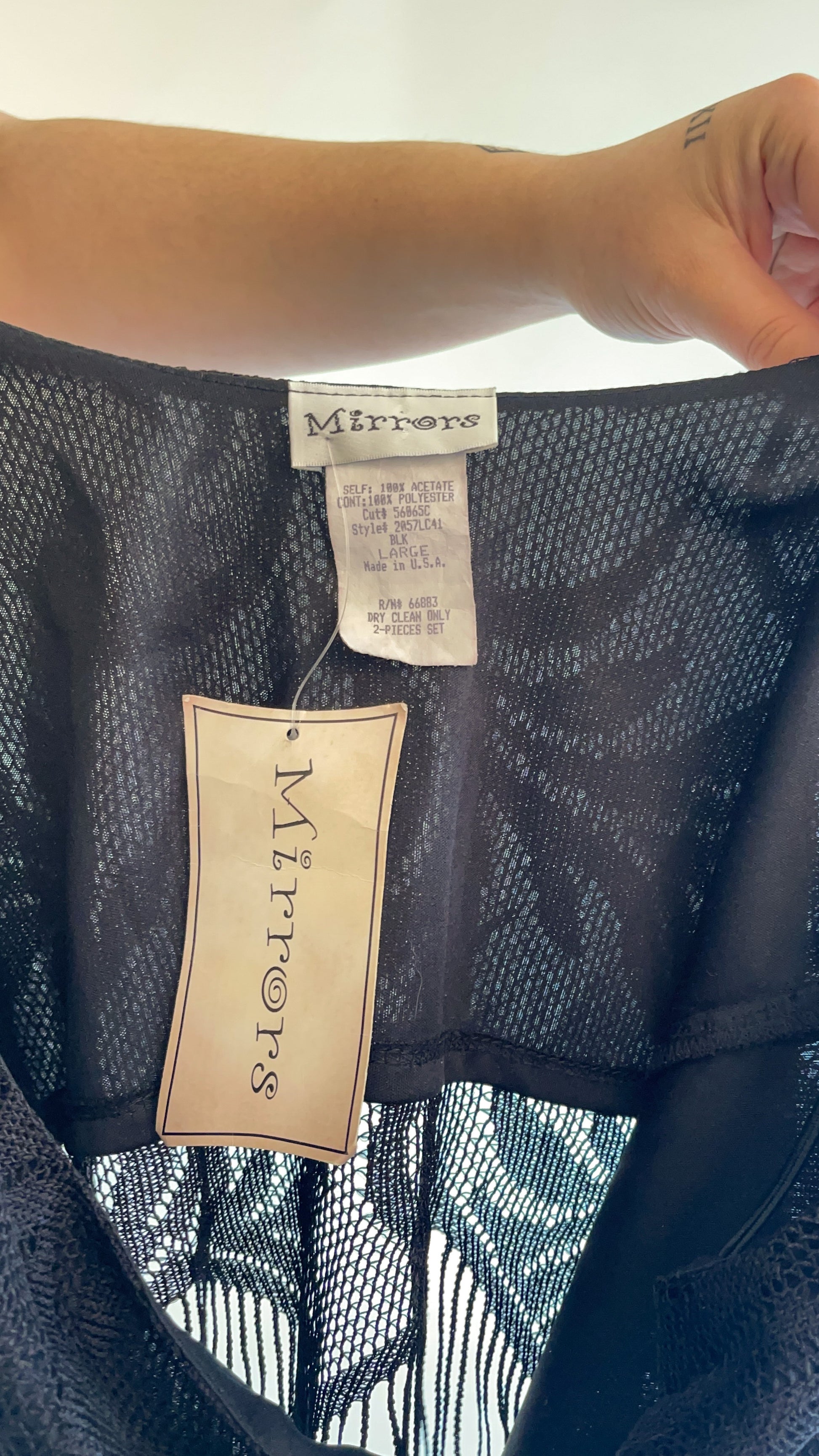 90s-00s Deadstock Black Crochet Fringe Lace Tank Top (S/M)