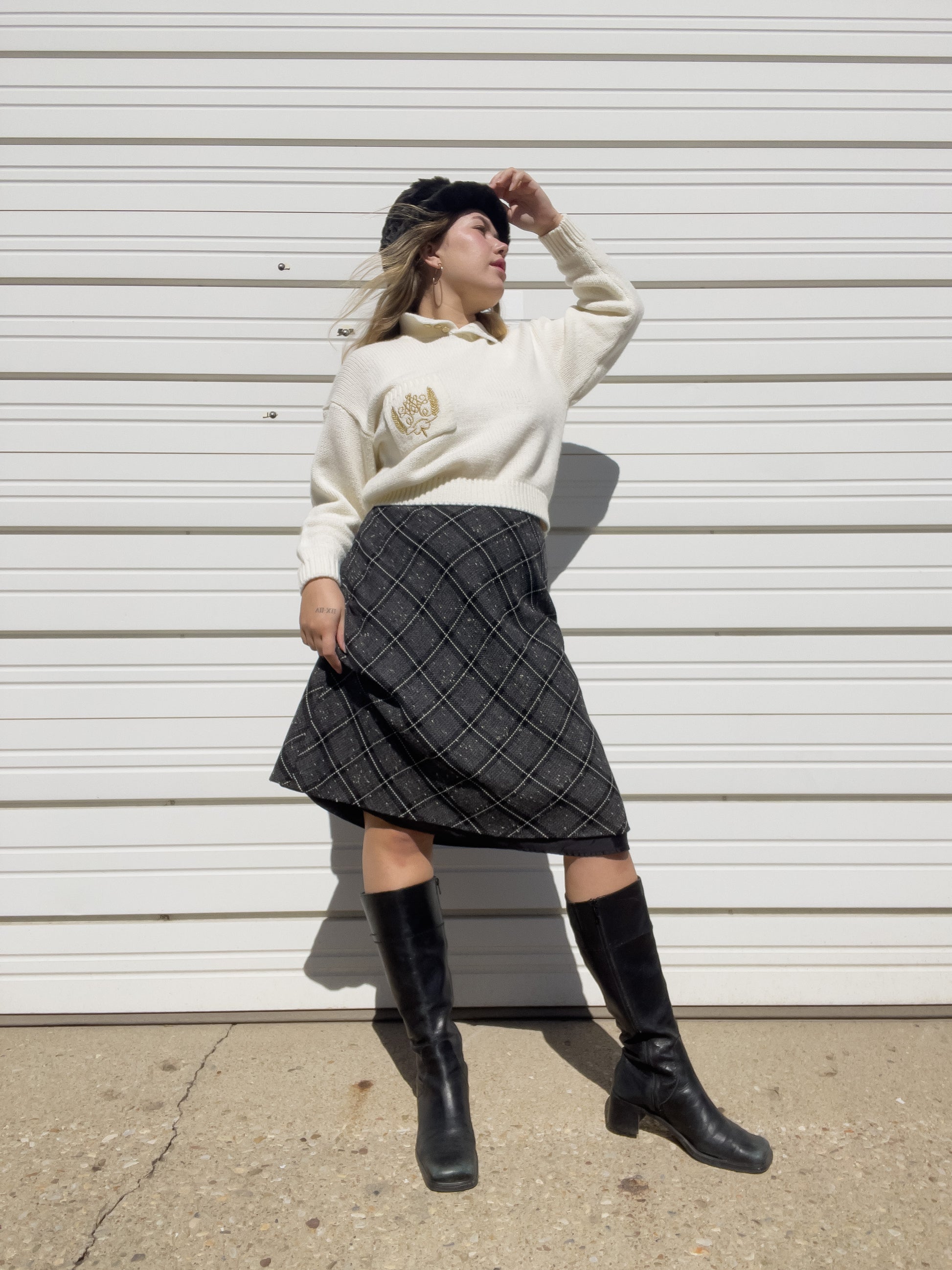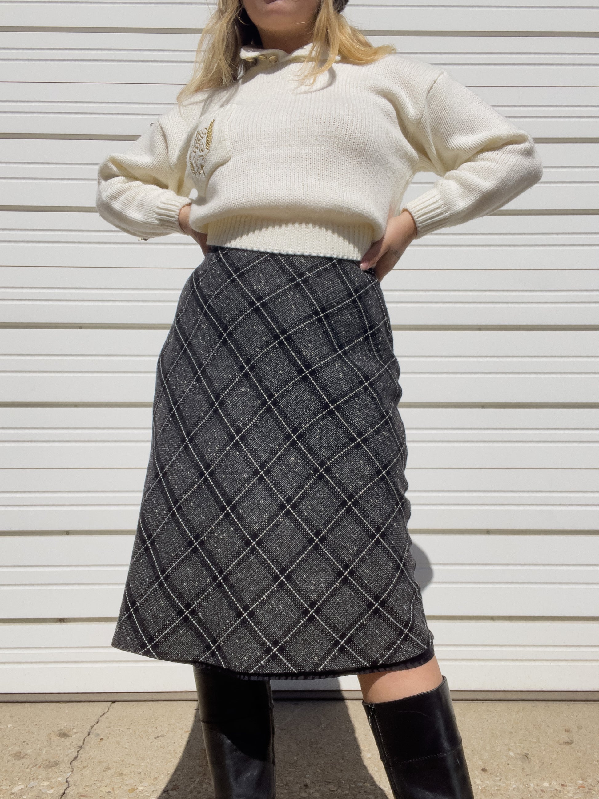 90s Black & White Plaid Midi Skirt (M/L)