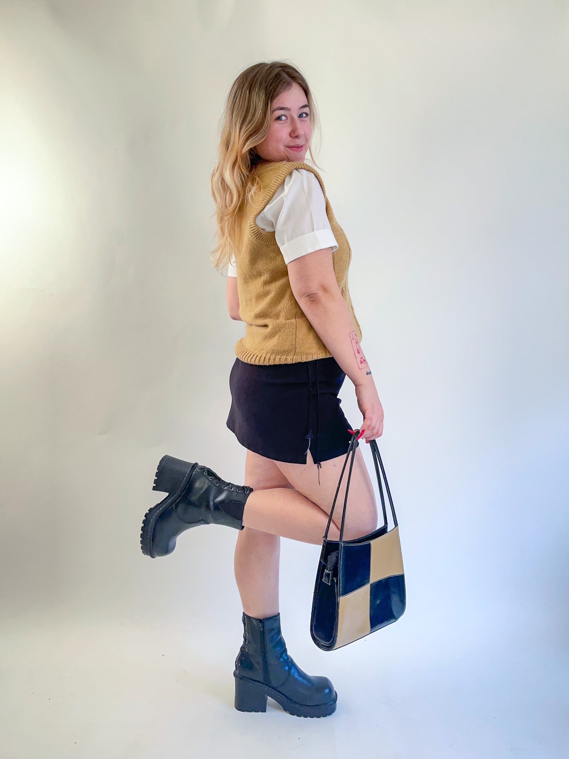 90s Chunky Heeled Platform Corset Lace Up Boots (Size 12)
