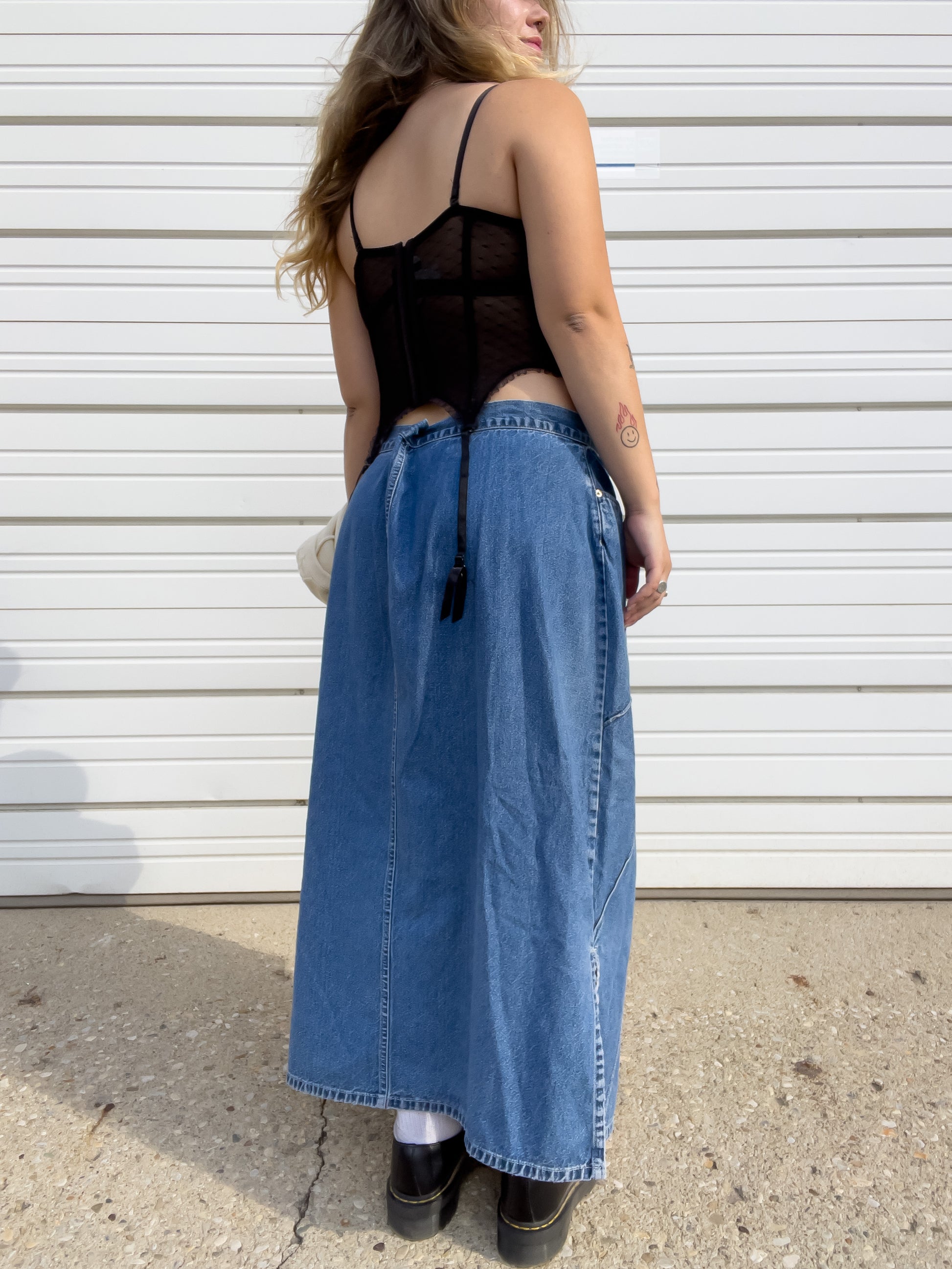 90s Denim Maxi Skirt w/ Pin-Tuck Detailing (W38")
