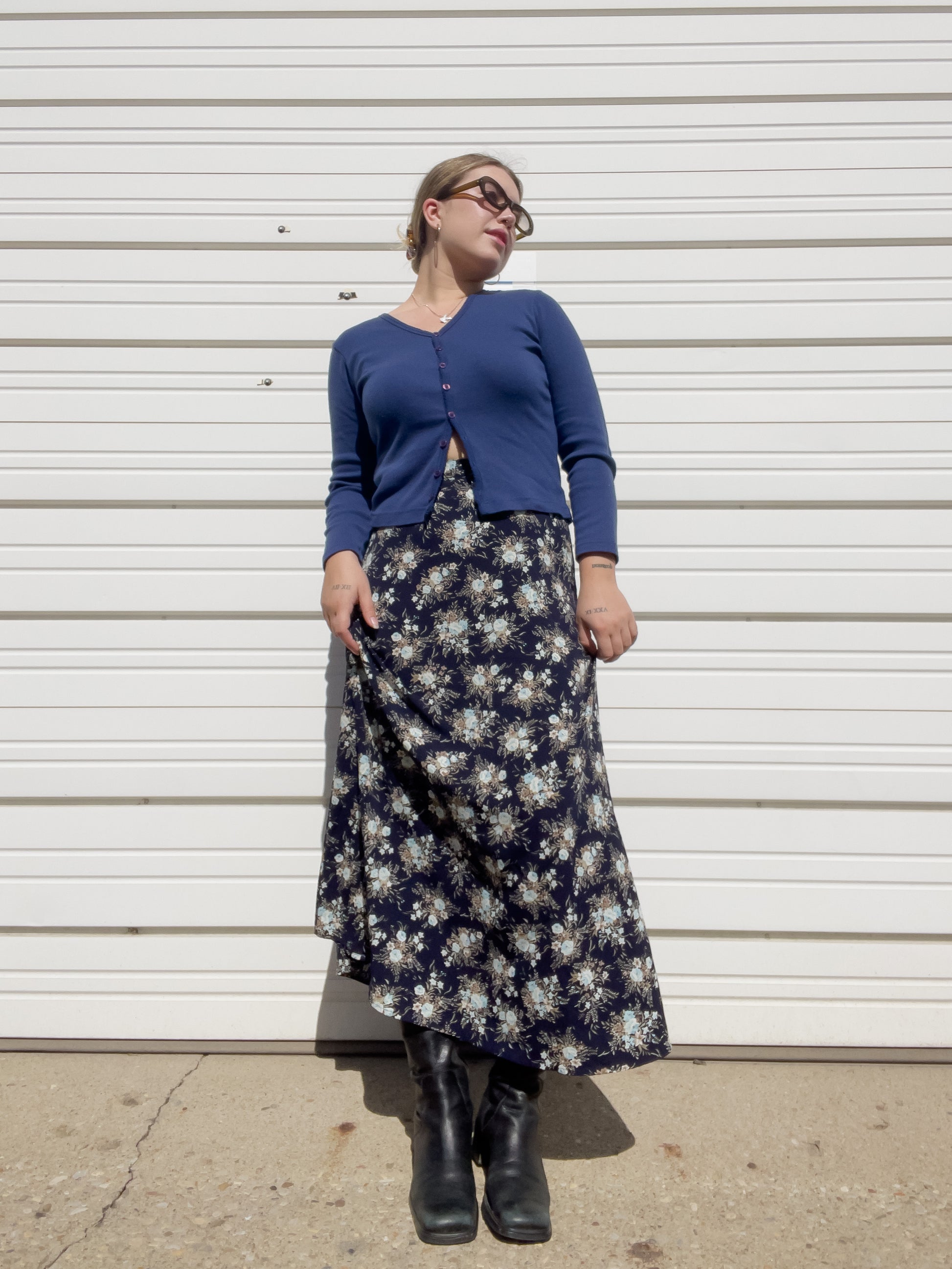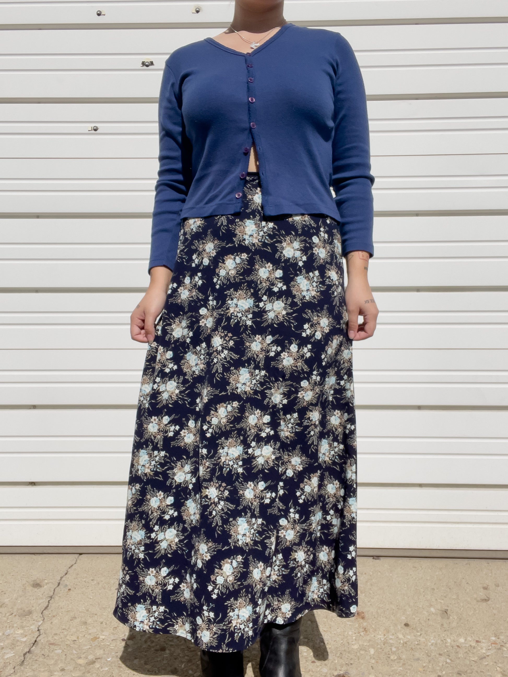 90s Navy Blue Floral Maxi Skirt (S/M)