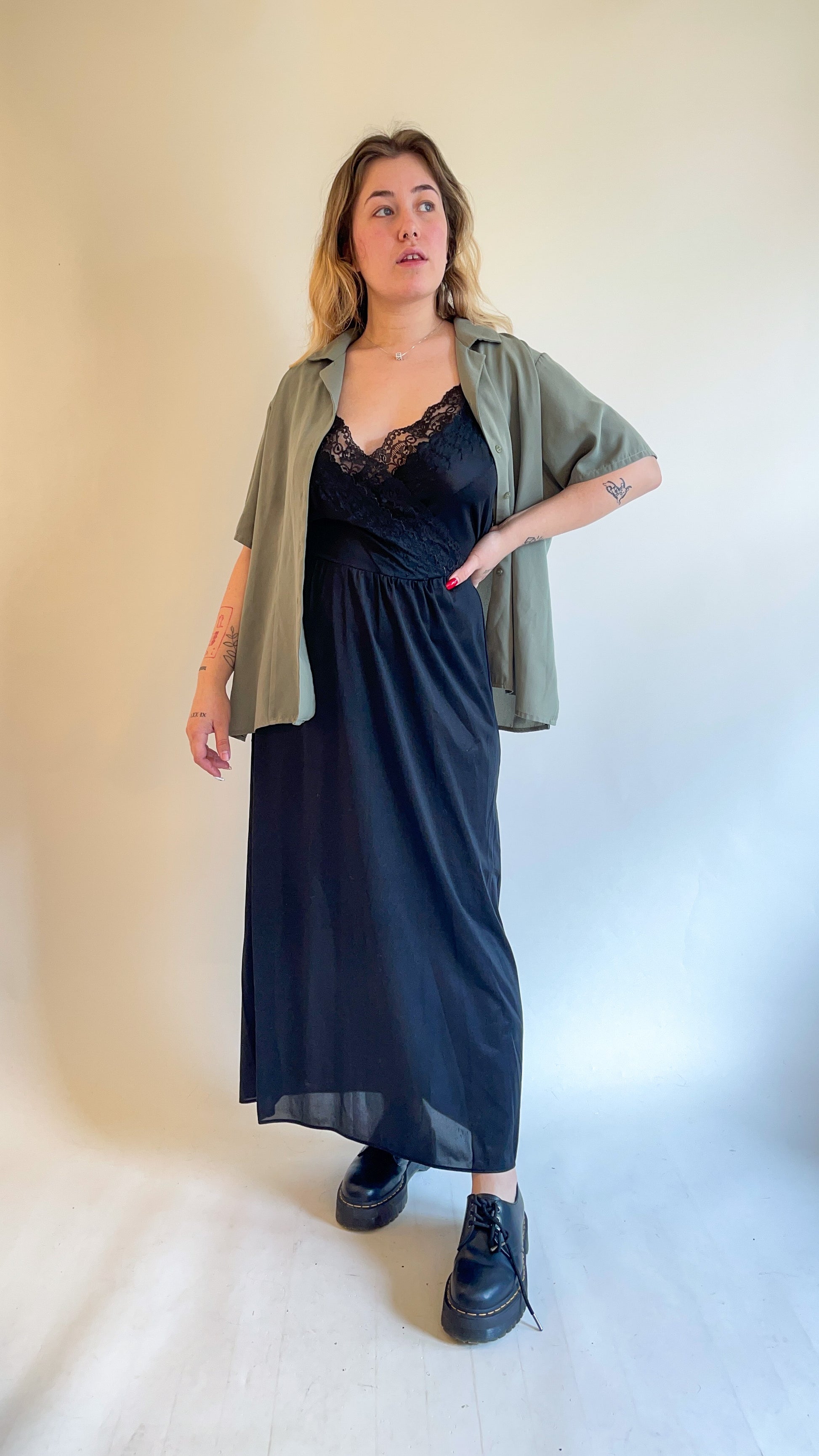 90s Sage Green Short Sleeve Button Up (XL)