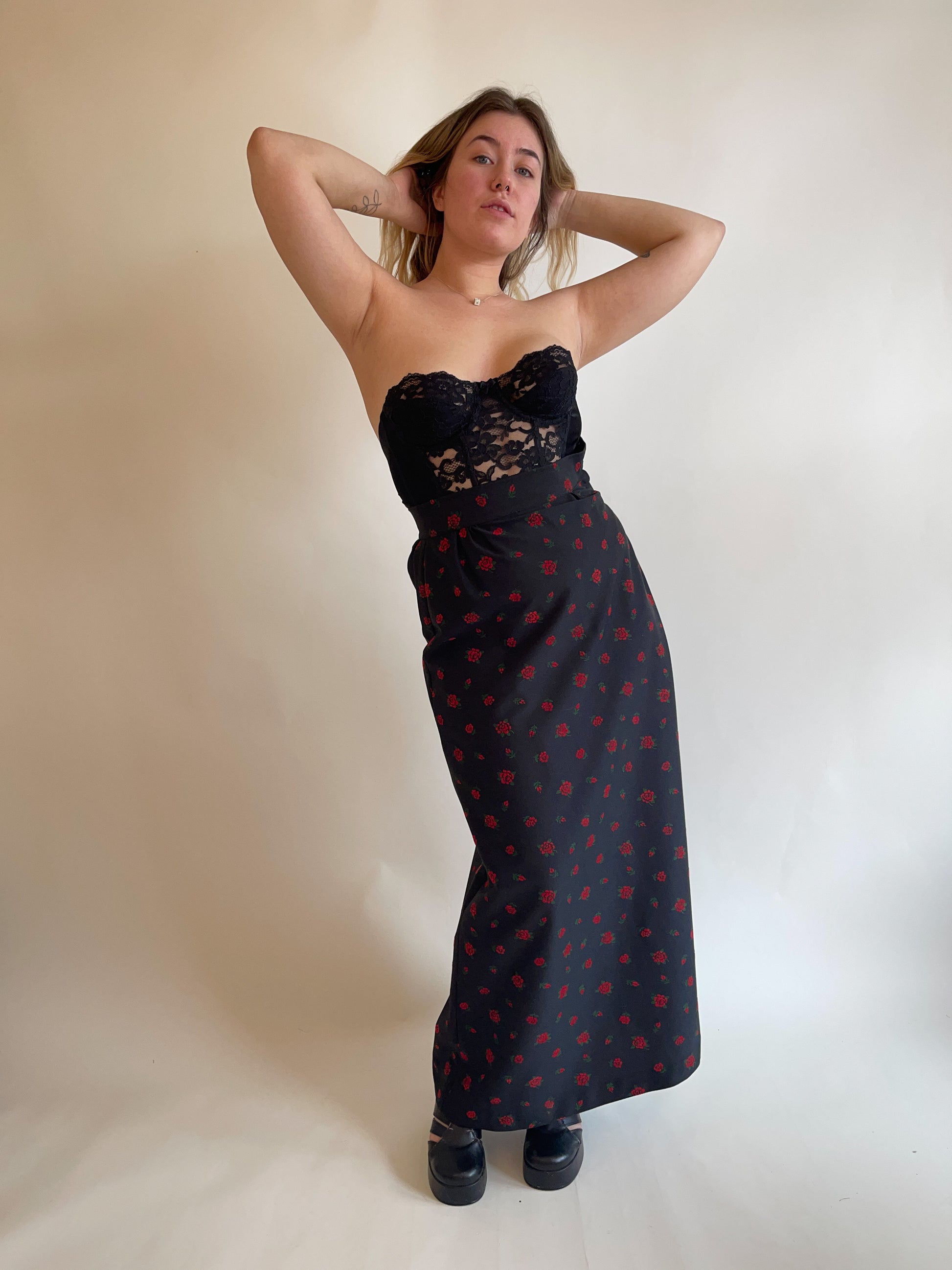 W26" 70s Maxi Skirt w/ Velveteen Roses